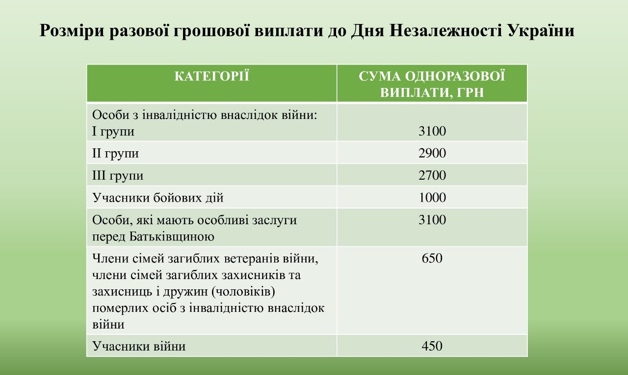 Щороку до Дня Незалежності України держава виплачує разову грошову допомогу людям, які мають певний статус. Виплати надаються автоматично або за зверненням – в залежності від ситуації.